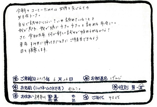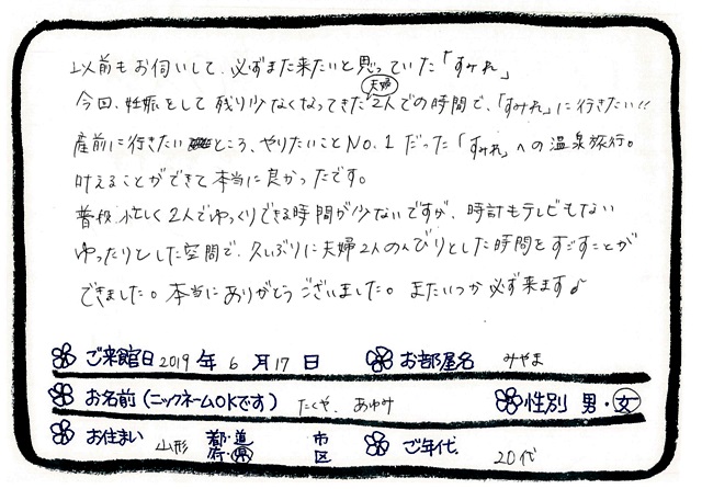 ご滞在いただいたお客様からの素敵なメッセージ