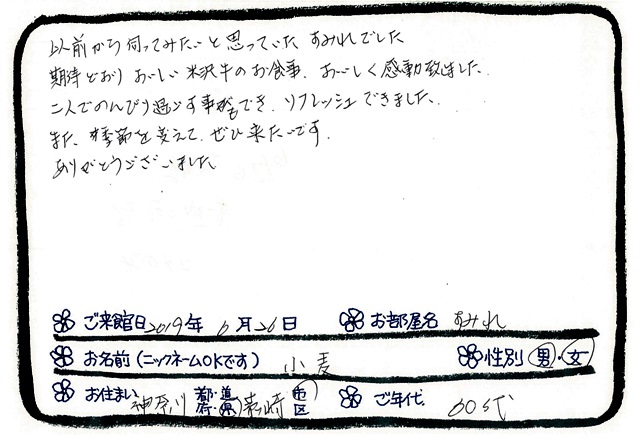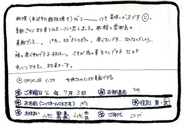 「おいしいお肉と近くに住む妹に会う事を楽しみに来ました♪」米沢牛